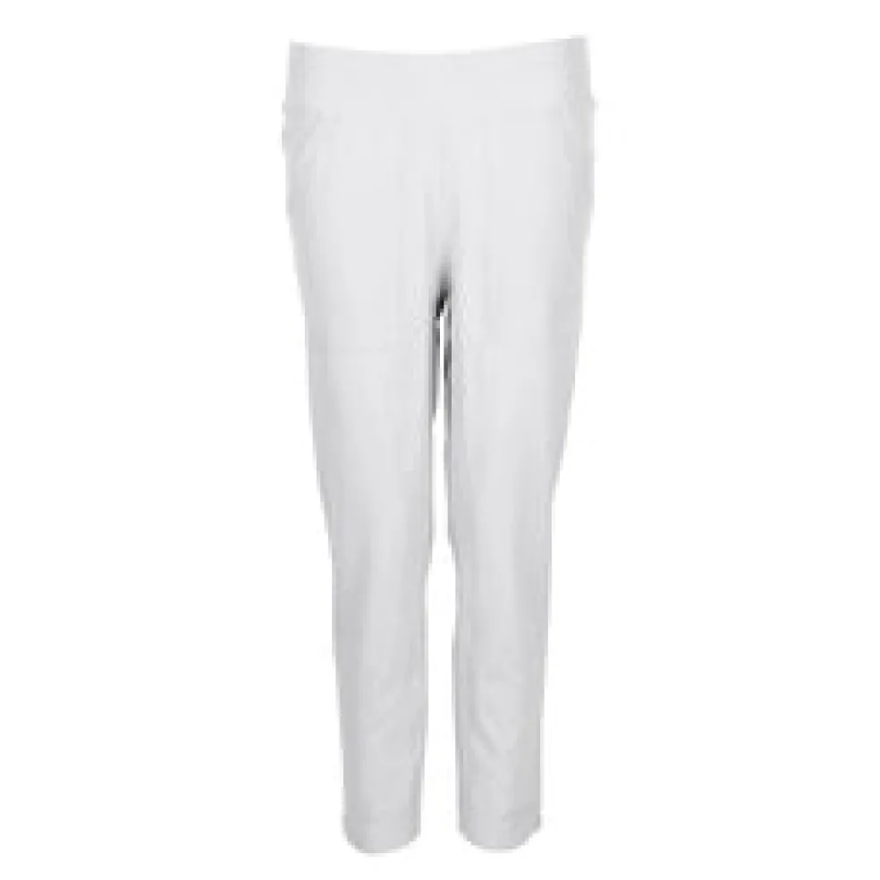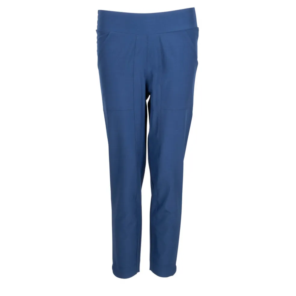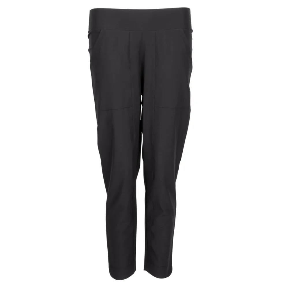Now you can enjoy your game with no distractions and total comfort with the Nancy Lopez Women’s Ace Cropped Pant. This pull-on ankle length pant features front hand pockets and back slit pockets. It’s made using a 85% polyester/15% spandex blend for the most comfortable, versatile piece of sportswear. Using DeLux Dri™ Moisture Wicking Technology, the lightweight woven fabric will keep you cool and dry from the first tee to the final green. With the signature Lopez Flame above the back pocket, this capri boldly defines the female golfer and her desire to make history on the course.