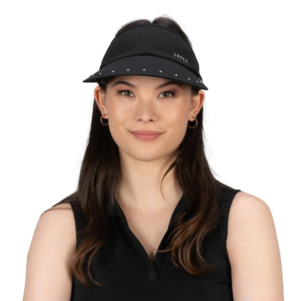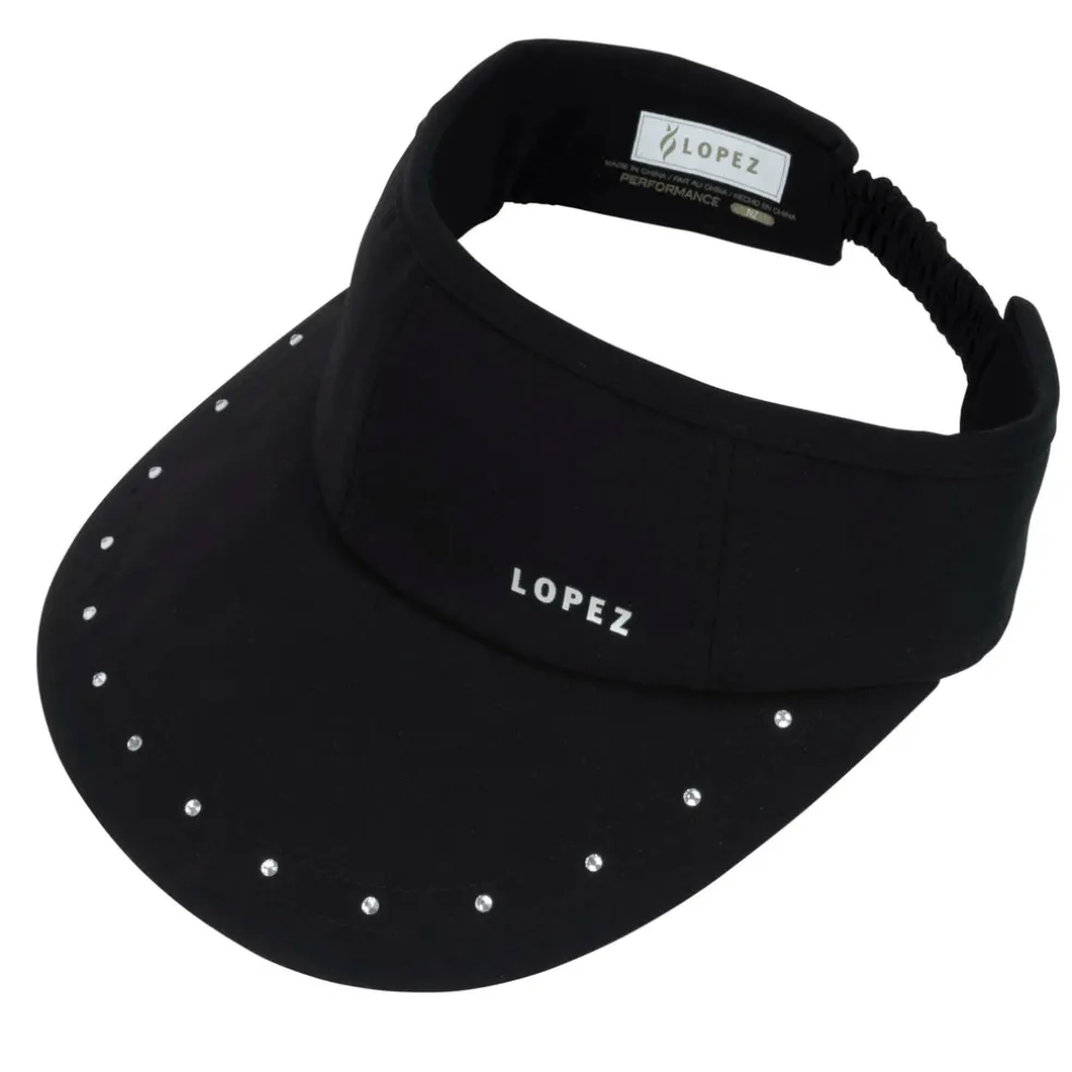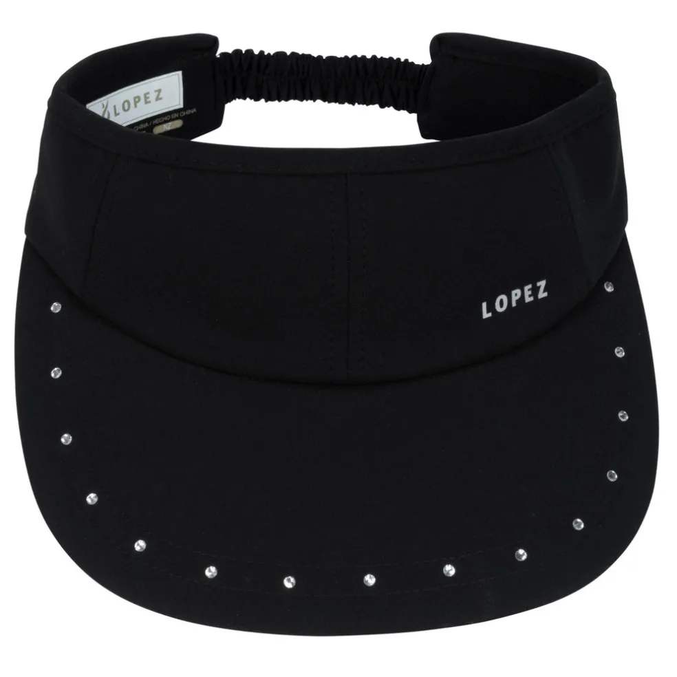 The Nancy Lopez Bling Visor offers style and comfort in one unique design. This visor utilizes fashion fabrics from the Nancy Lopez Apparel Collection, allowing you to coordinate perfectly with any Lopez outfit. It’s made using 100% polyester, making it a breathable, versatile piece of headgear. The comfort elastic gives a snug fit around the head, while the full-coverage, rhinestone-decorated bill offers optimal protection from the sun.