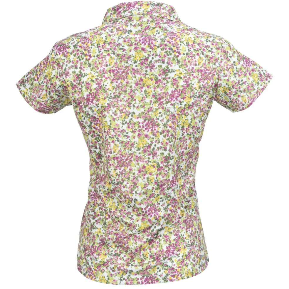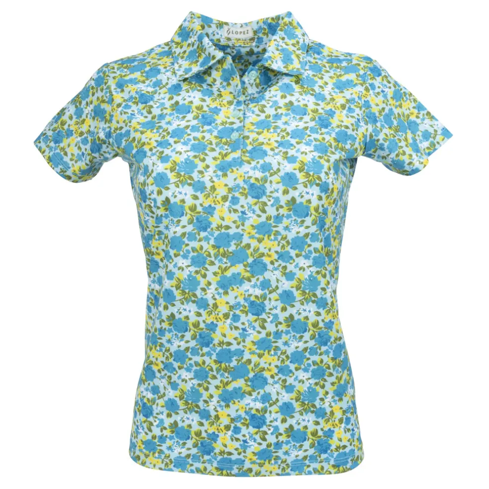 The Bloom Short Sleeve Polo is constructed from a beautiful micro flat knit pique that is soft on the skin, yet cool to the touch. This polo is made using a 100% polyester for the most comfortable, versatile piece of sportswear. The self-fabric collar with 4-button placket presents an attractive, sleek look for the female golfer. Using DeLux Dri‚Ñ¢ Moisture Wicking Technology, the lightweight, micro pique fabric will keep you cool and dry from the first tee to the final green. Its gentle, sleek texture makes for an ideal fit and poise while breaking a sweat on the course. With the signature Lopez Flame icon embroidered at the right hip, this polo boldly highlights the golfer as she conquers the eighteen holes. Bloom Short Sleeve Polo is the perfect choice to pair with our single-colored golf bottoms.