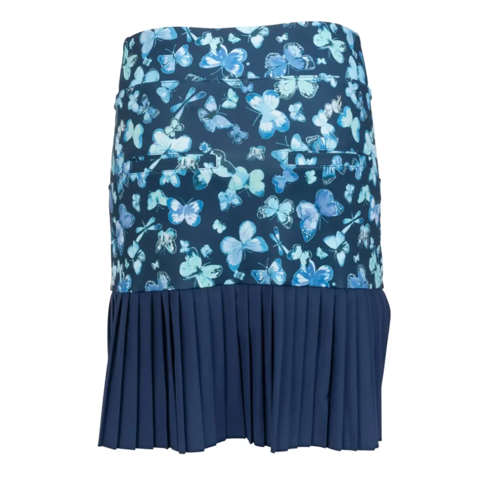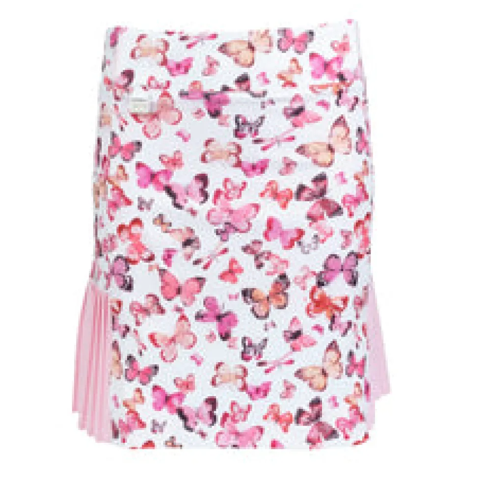 Being the titleholder is a breeze in the Nancy Lopez Women’s Butterfly Skort. This 18” pull-on skort features side hand pockets and back slit pockets. It uses an 88% polyester/12% spandex blend and an 85% polyester/15% spandex woven pleated flounce for the most comfortable, versatile sportswear. You’ll barely feel the lightweight undershorts, giving you a fantastic range of motion as you play. Using DeLux Dri™ Moisture Wicking Technology, the lightweight jersey fabric will keep you cool and dry from the first tee to the final green. With the signature Lopez Flame icon above the back pocket, the printed Butterfly Skort is the perfect choice to pair with a single-colour golf top.