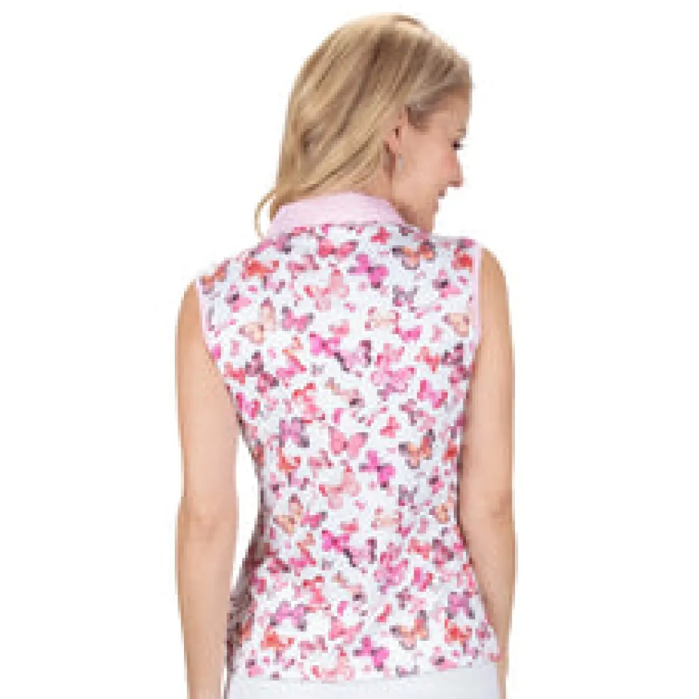 The Butterfly Sleeveless Polo elevates your game with an attractive, feminine look for the golfer. Crafted from polyester/spandex printed jersey, this polo features DeLux Dri‚Ñ¢ moisture-wicking technology and UPF 50+ sun protection, ensuring you stay cool and shielded on the course. With a solid self-collar, shirring detail at open V-neck placket, and the iconic Lopez Flame logo at the right hip, this performance-driven essential is a stylish and functional choice for every round of golf.