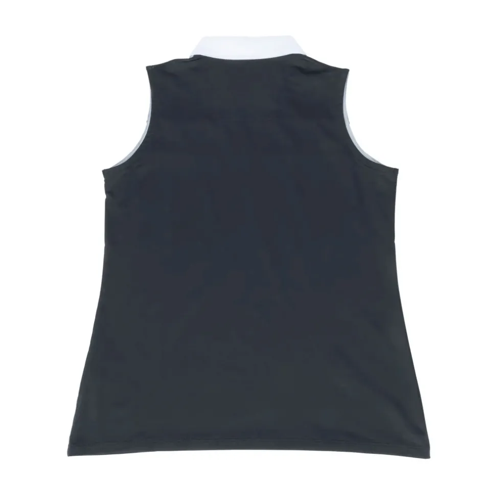 Fairways by Nancy Lopez is tailor-made for a hole-in-one performance. The Crush Sleeveless Polo, made with a 92% polyester and 8% spandex blend, features a lightweight, jersey fabric with DeLux Dri‚Ñ¢ moisture-wicking technology, keeping you dry and odour-free throughout your game. Its self-collar with open V-neck and contrast insets and piping attractively frame the golfer with fitted comfort and poise as she makes putting look effortless. This polo is essential for any golf wardrobe, leaving you sleek and shaped for year-round swings.