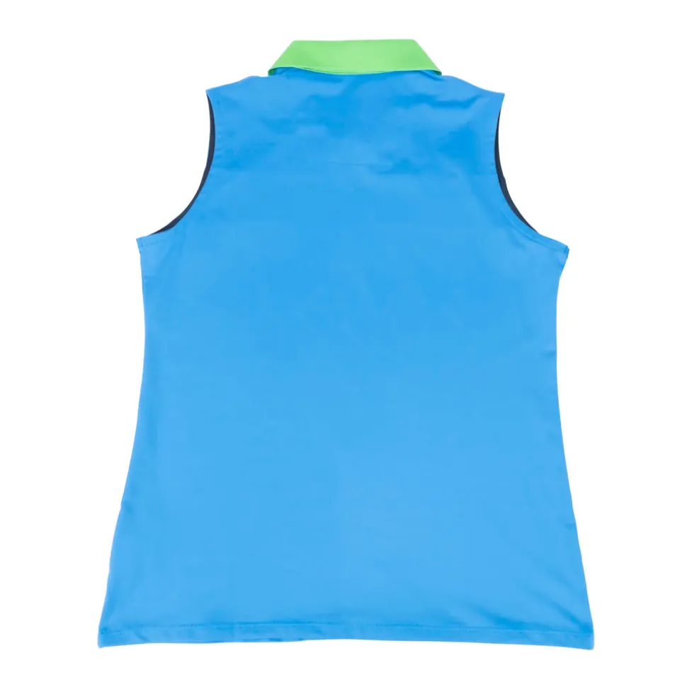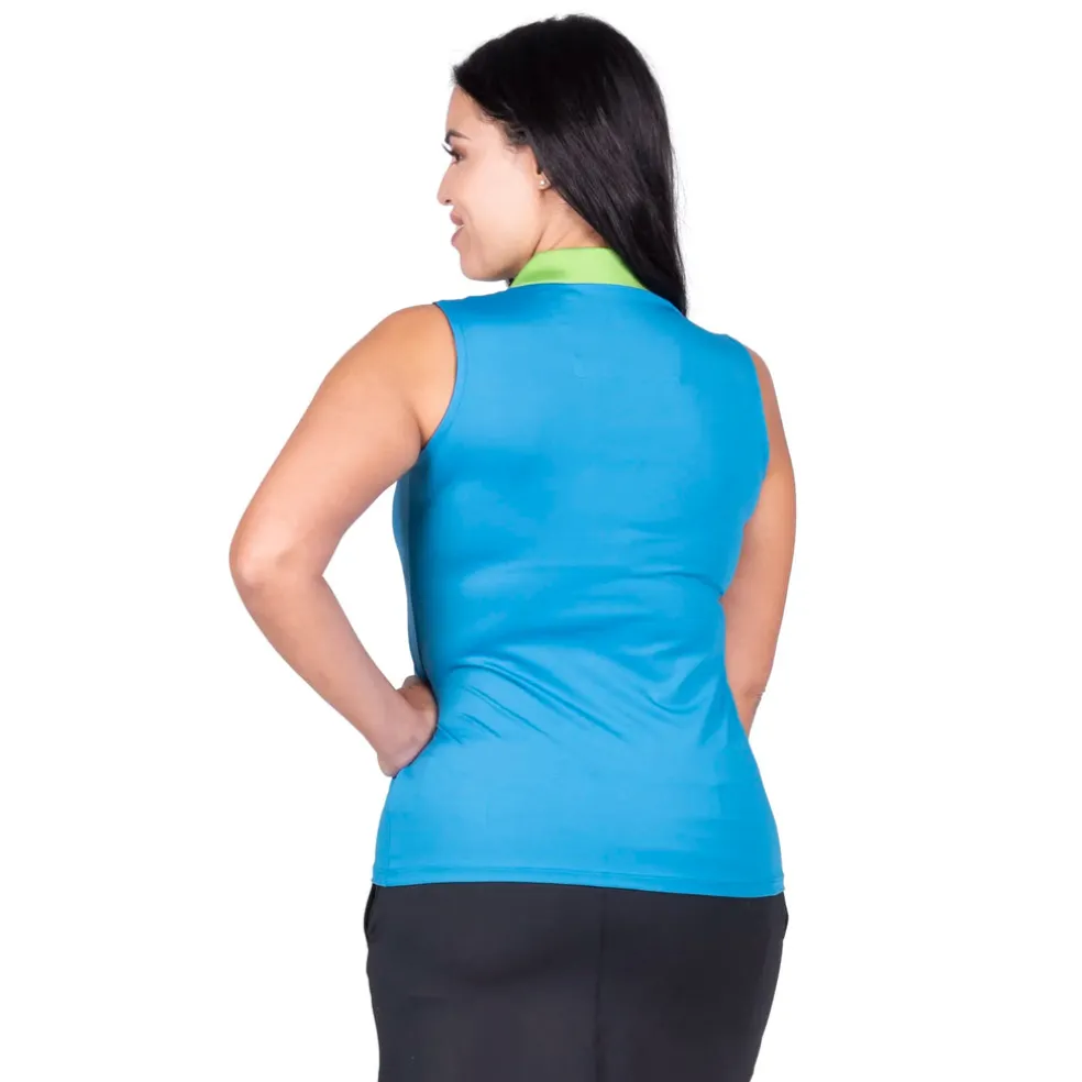 Fairways by Nancy Lopez is tailor-made for a hole-in-one performance. The Crush Sleeveless Polo, made with a 92% polyester and 8% spandex blend, features a lightweight, jersey fabric with DeLux Dri‚Ñ¢ moisture-wicking technology, keeping you dry and odour-free throughout your game. Its self-collar with open V-neck and contrast insets and piping attractively frame the golfer with fitted comfort and poise as she makes putting look effortless. This polo is essential for any golf wardrobe, leaving you sleek and shaped for year-round swings.