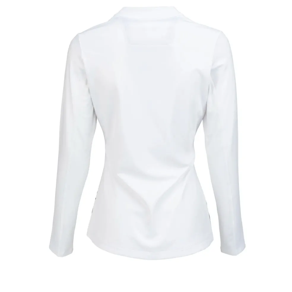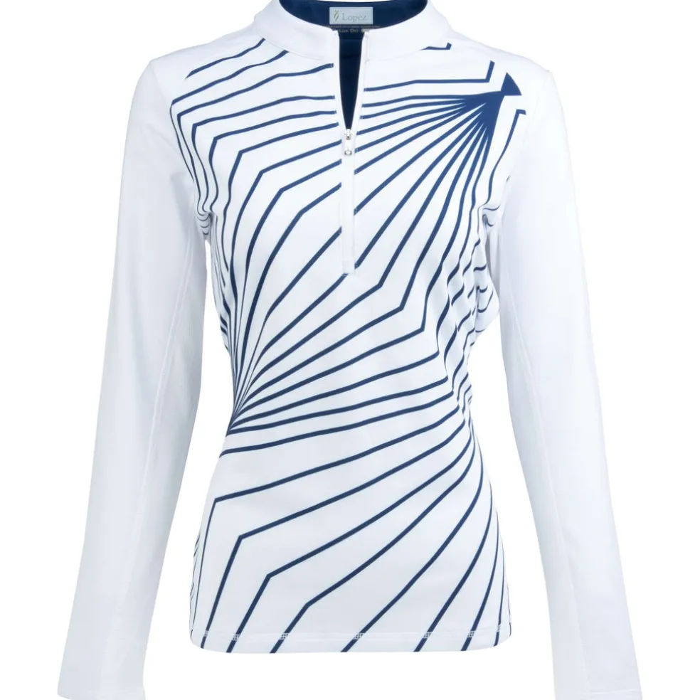 Stay cool, confident, and protected on the golf course with the Nancy Lopez Fractal Blast QZ Pullover. Engineered with DeLux Dri™ moisture-wicking technology, this pullover keeps you dry and comfortable as you navigate the eighteen holes. The UPF 50+ sun protection shields your skin from harmful UV rays, making it perfect for long days under the sun. The ultra-soft brushed jersey fabric feels luxurious against your skin, while mesh insets under the sleeves offer enhanced breathability for those warmer rounds. The mock neck with a zip placket and metallic jewel zipper pull adds a touch of elegance, ensuring you look as great as you feel. Whether you’re perfecting your swing or enjoying a casual round with friends, the Fractal Blast QZ Pullover ensures you do it all with grace and ease.