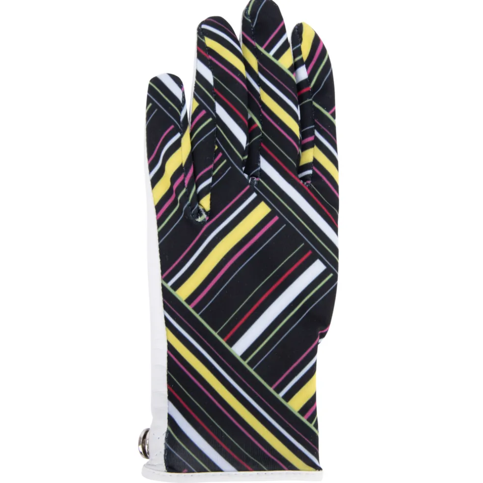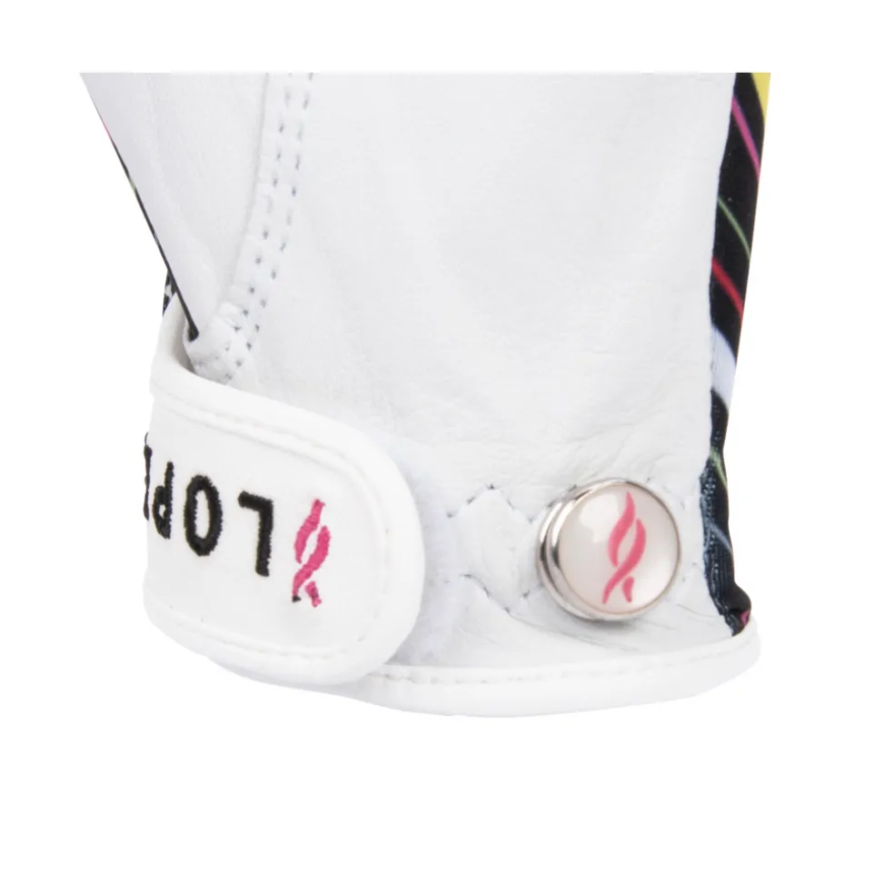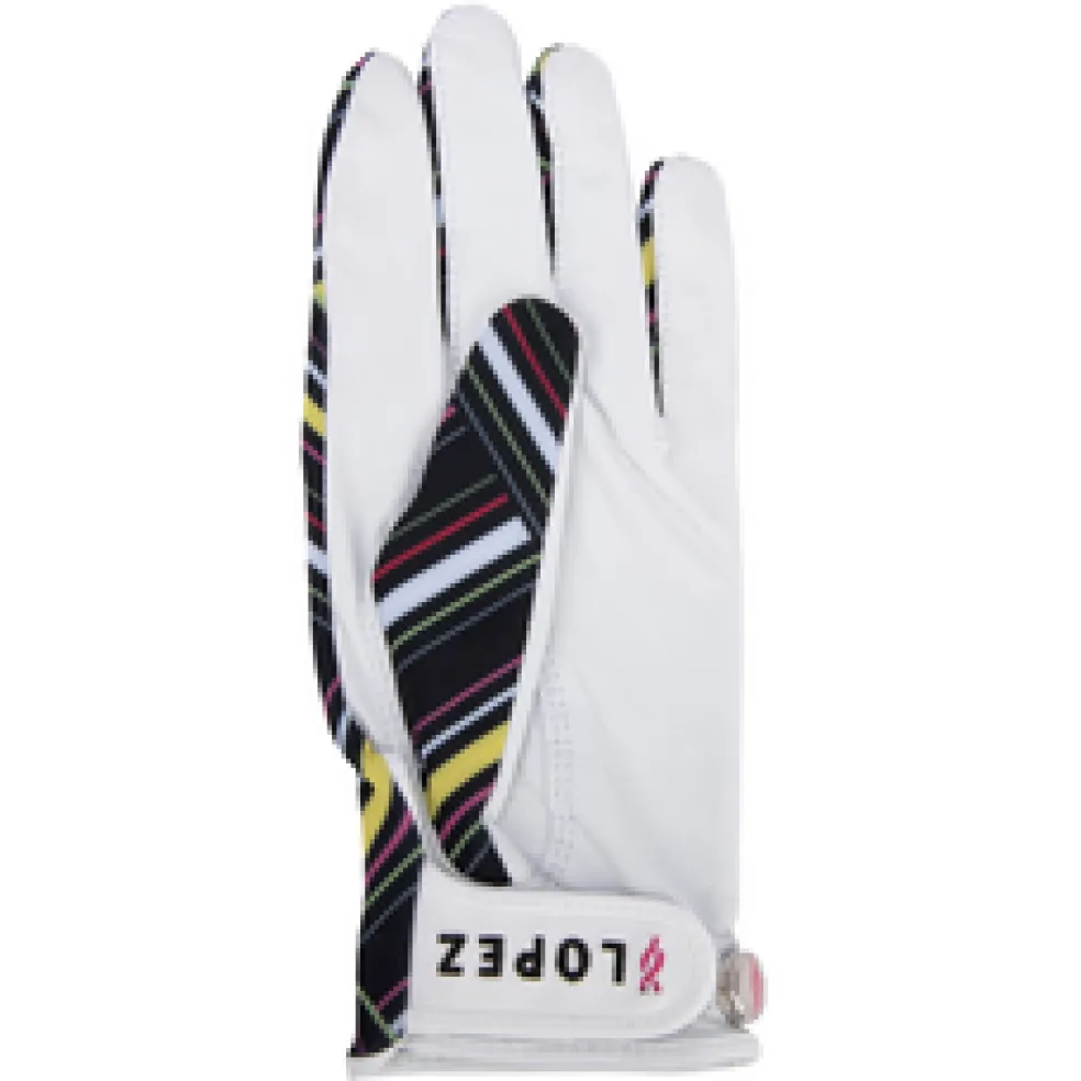Take hold of your new records with style and poise in the Nancy Lopez Full Finger Sprite Golf Glove. This sports glove is made with a lightweight, cool comfort stretch spandex that allows the skin to stay cool and dry, for ultimate breathability and comfort. Its soft, premium sheepskin cabretta leather palm ensures a soft, comfortable feel and a consistent, durable grip with every swing. The¬†UV¬†50+ sun protection fabrics provide the ultimate coverage and protection from the sun’s harmful¬†UV rays out on the course. Available in a range of vibrant colours and signature prints, this glove tailors to your game performance. Left hand gloves are for right-handed golfers. Right hand gloves are for left-handed golfers.
