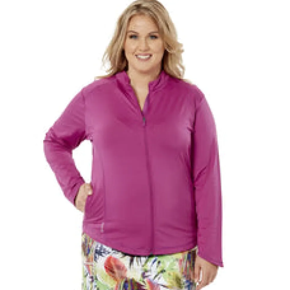 Stay on top of your game with Nancy Lopez Jazzy Jacket! This long sleeve full zip jacket features a soft, brushed interior, stylish mandarin collar and side slit pockets to keep you warm and looking great!
