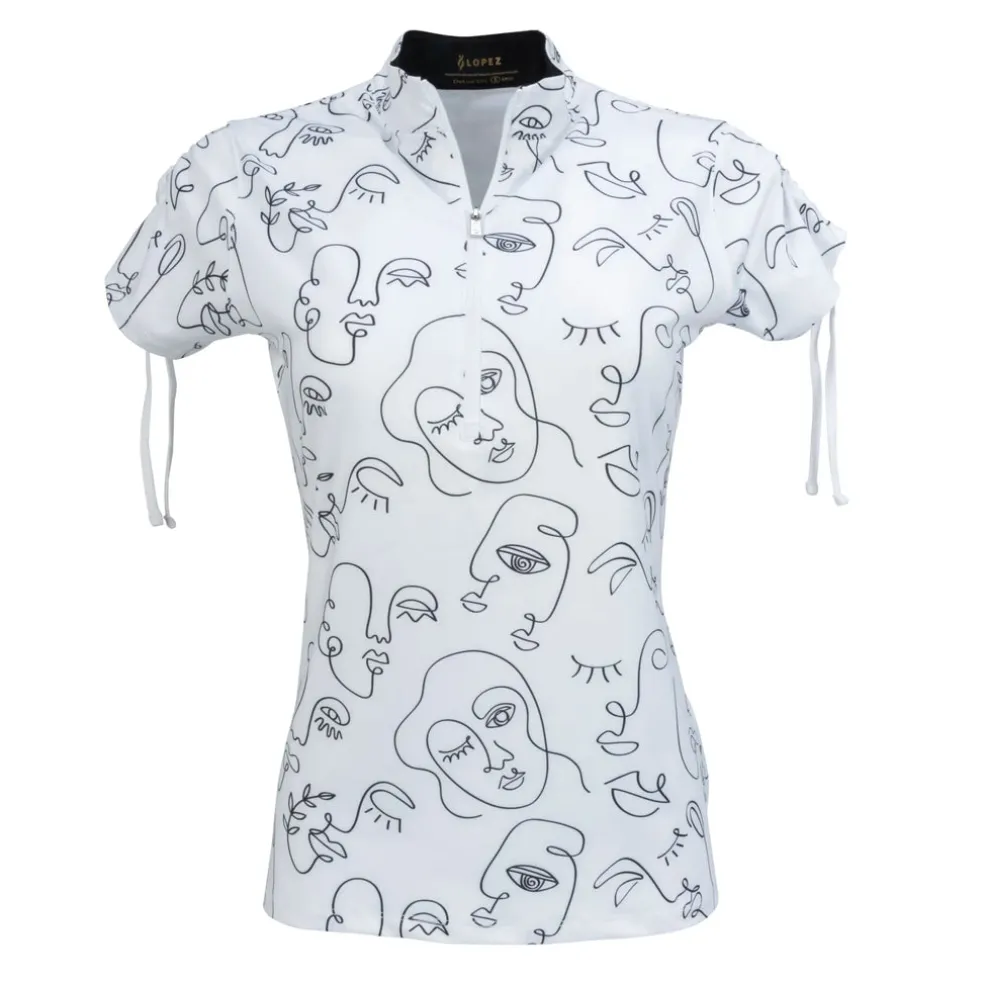 Discover the perfect blend of style and performance with the Picasso Short Sleeve Polo. Crafted from a premium polyester-spandex jersey, this polo features DeLux Driª moisture-wicking technology and UPF50+ sun protection to keep you cool and protected on the course. The solid mock collar and zip placket, adorned with a metallic jeweled zipper pull, offer a touch of sophistication, while the shoulder drawstring details add a unique, customizable fit. Finished with the iconic Lopez Flame logo on the right hip, this polo is designed to elevate your game and your style.