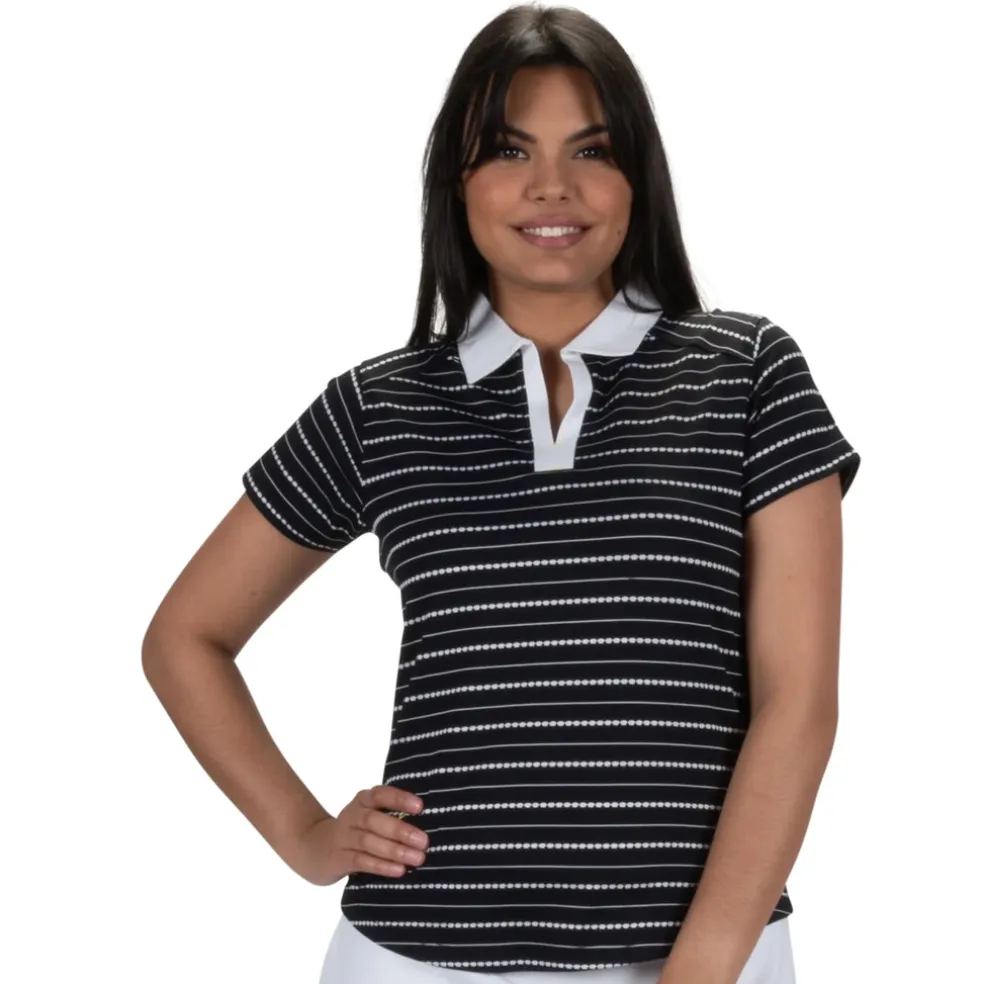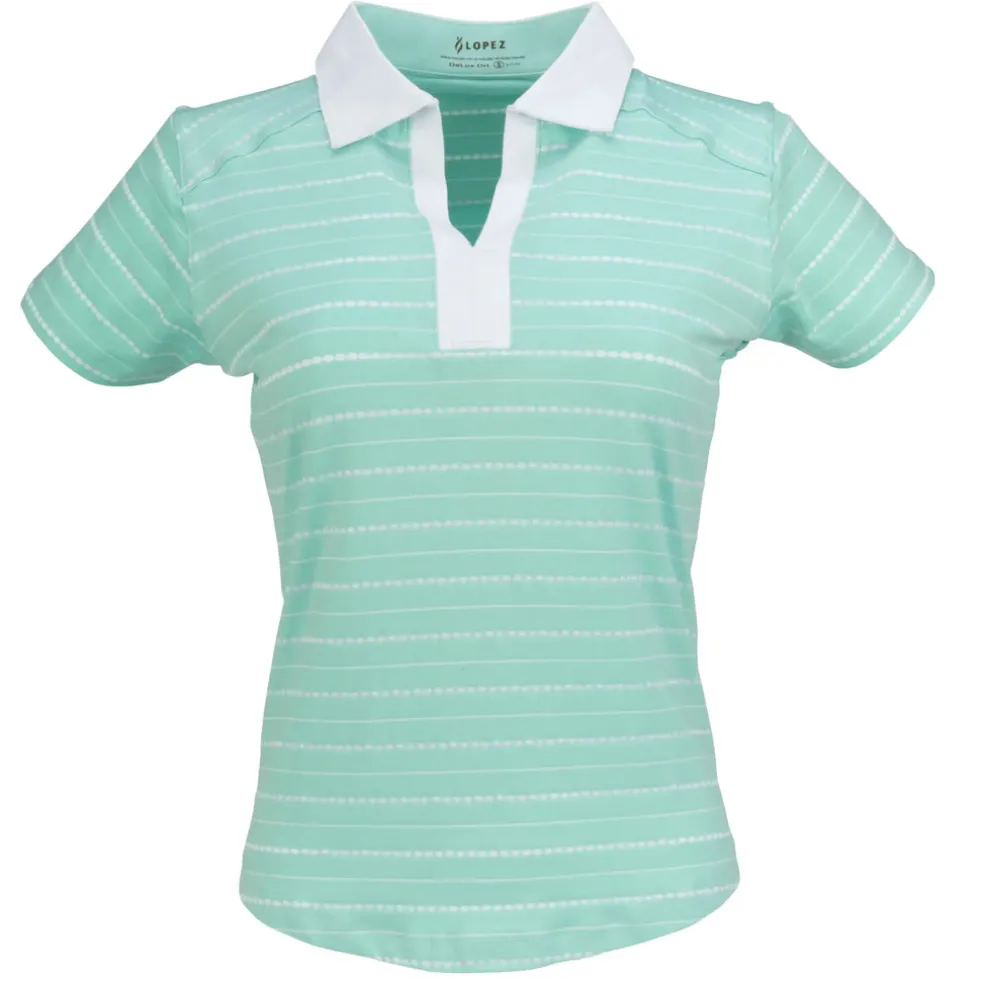 The Point Short Sleeve Polo elevates your game with an attractive, sleek look for the golfer. Crafted from nylon/micro polyester striped jacquard, this polo features Desert Dry™ moisture-wicking technology and UPF 50+ sun protection, ensuring you stay cool and shielded on the course. With a contrast self-collar, contrast open Y-neck placket and the iconic Lopez Flame logo at the right hip, this performance-driven essential is a stylish and functional choice for every round of golf.