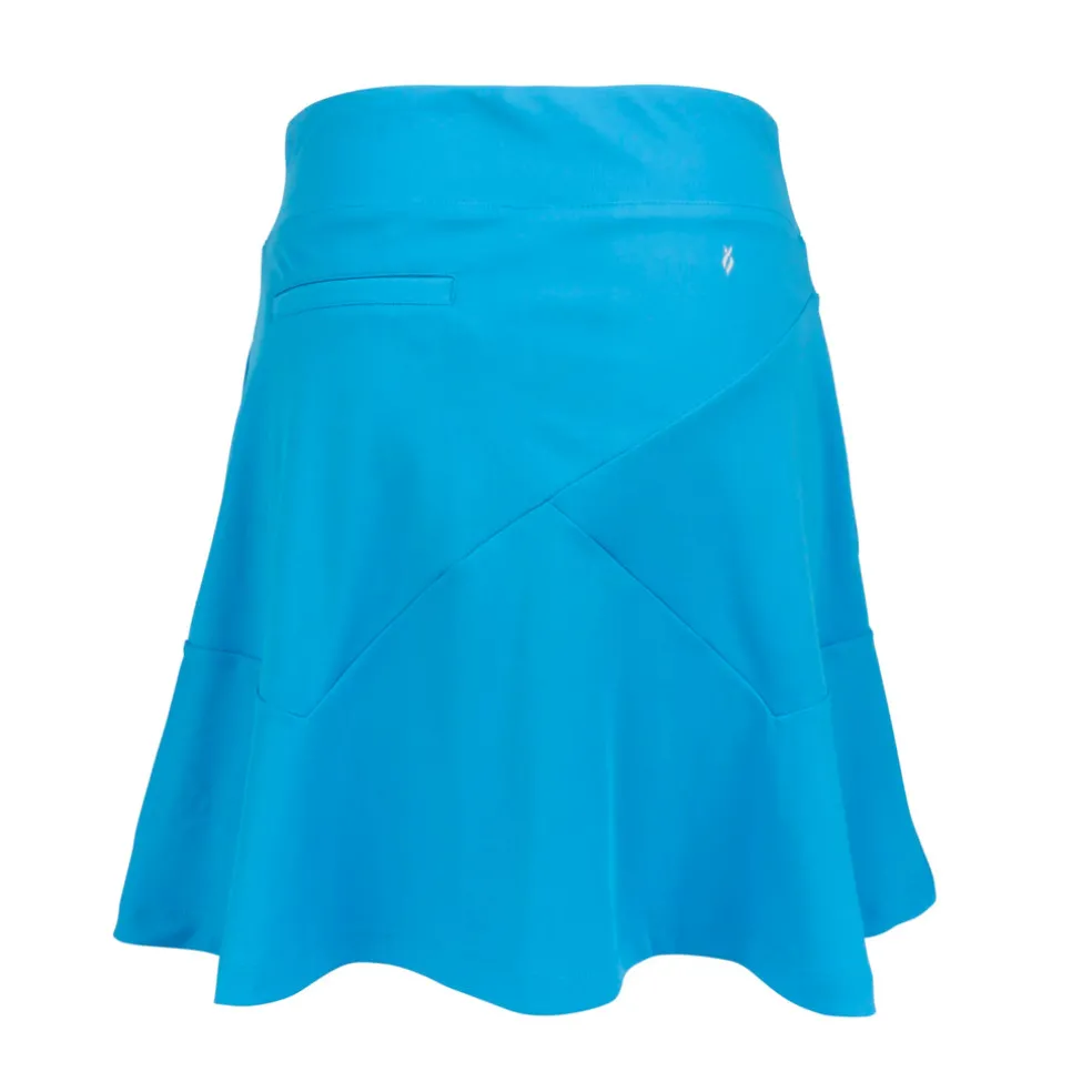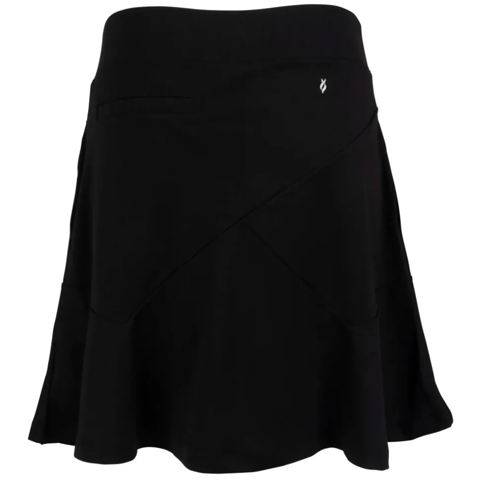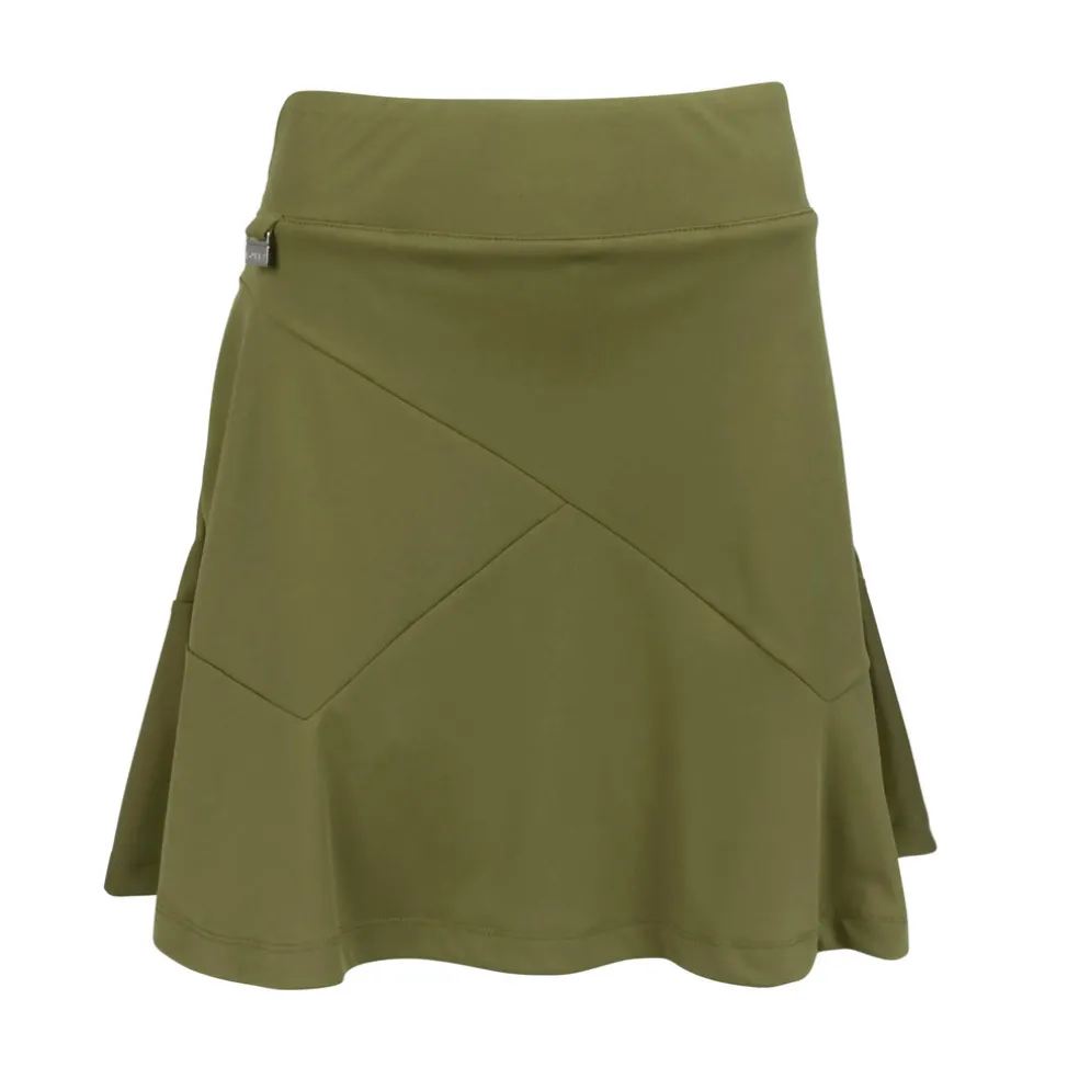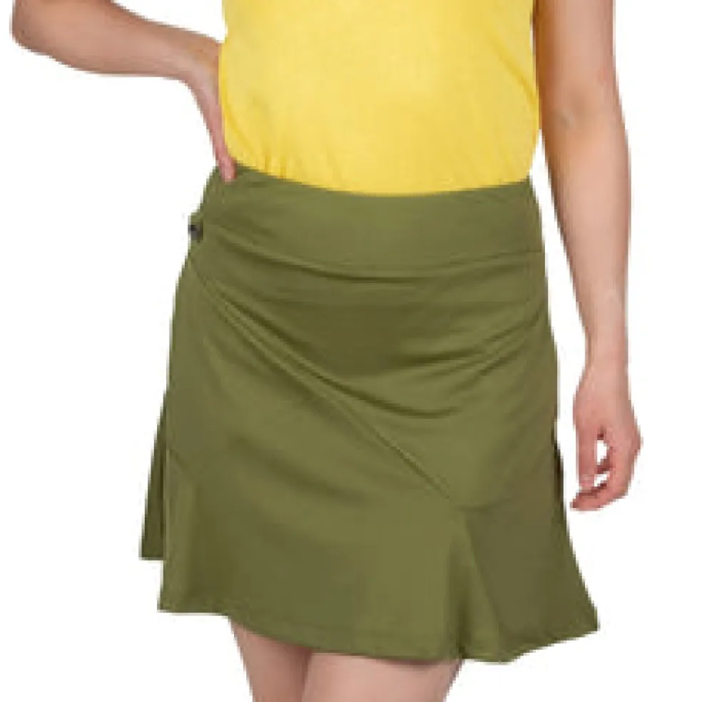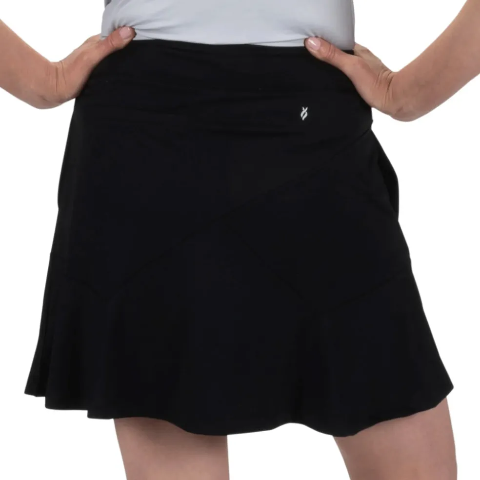 This 18″ pull-on skort features side hand pockets and a back slit pocket. It uses a polyester/spandex blend for the most comfortable, versatile sportswear. You’ll barely feel the lightweight undershort, giving you a fantastic range of motion as you play. Using DeLux Dri‚Äö√묢 Moisture Wicking Technology, the lightweight jersey fabric will keep you cool and dry from the first tee to the final green. With the signature Lopez Flame icon above the back pocket, the Sassy Skort is the perfect choice to pair with a single-coloured golf top.