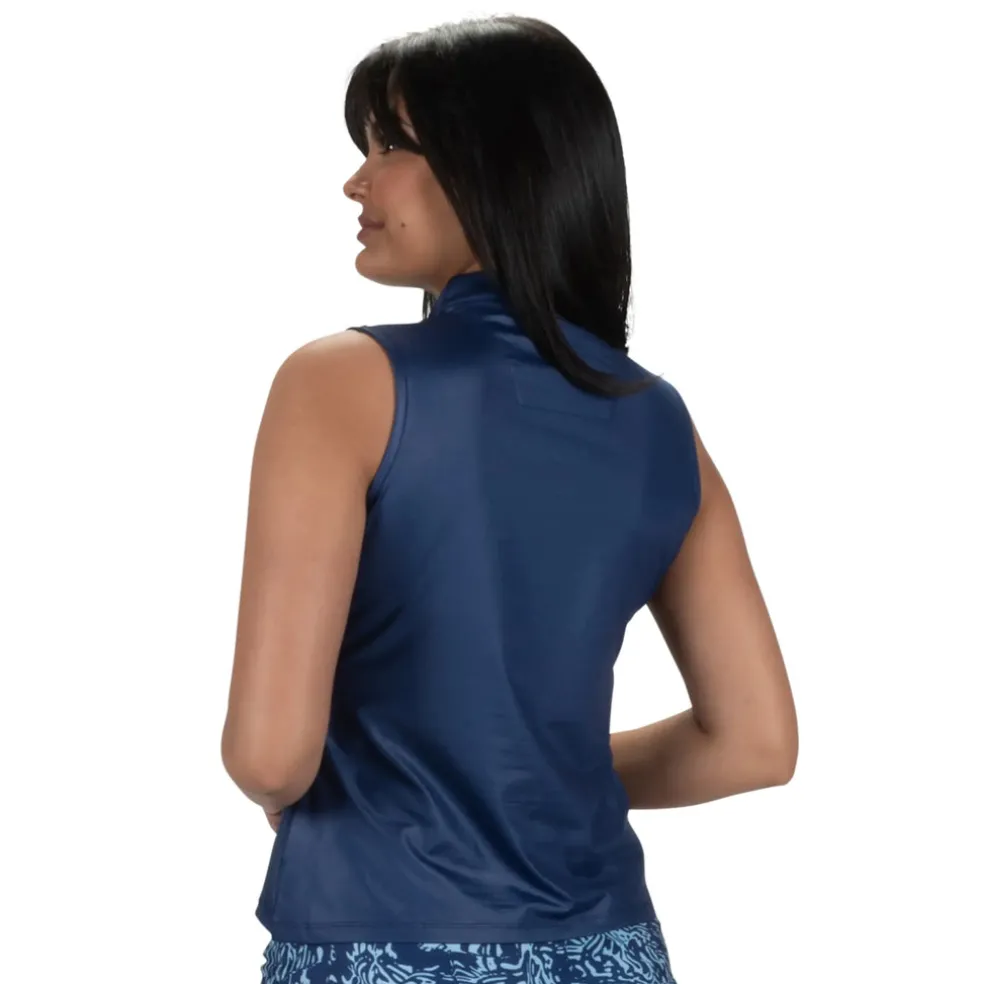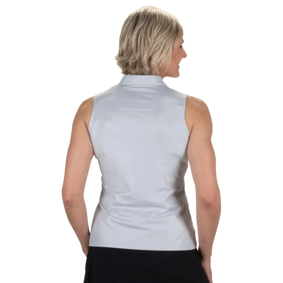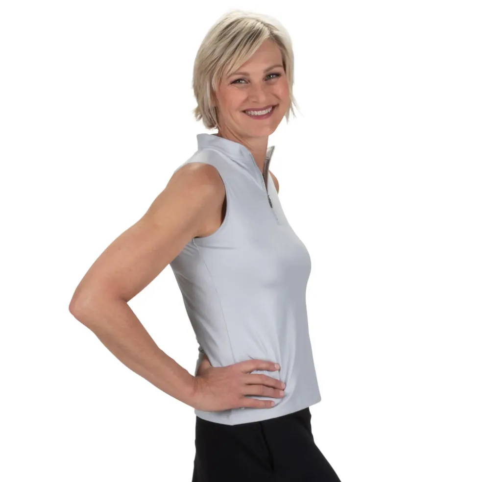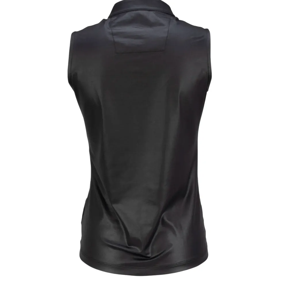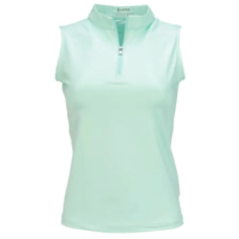 The Shine Sleeveless Polo is constructed with a beautiful polyester/spandex jersey blend Ð soft on the skin yet cool to the touch. The mock collar and zip placket offer an attractive, sleek neckline for the female golfer. Using DeLux Dri™ Moisture Wicking Technology and UPF 50+, the fabrics will keep you dry and sun-protected from the first tee to the final green. This polo is perfect for pairing with single-coloured or printed golf bottoms.