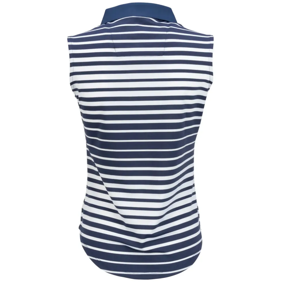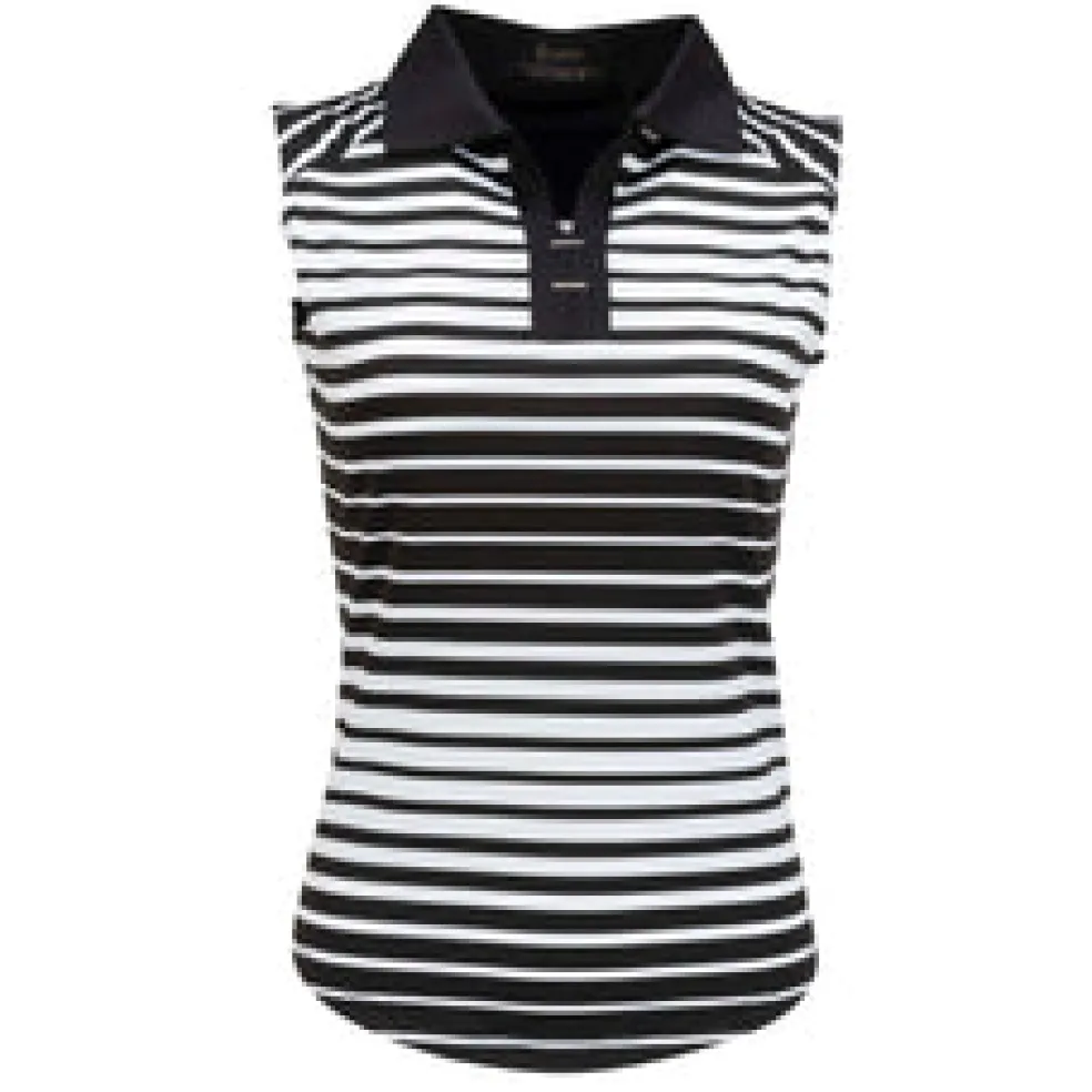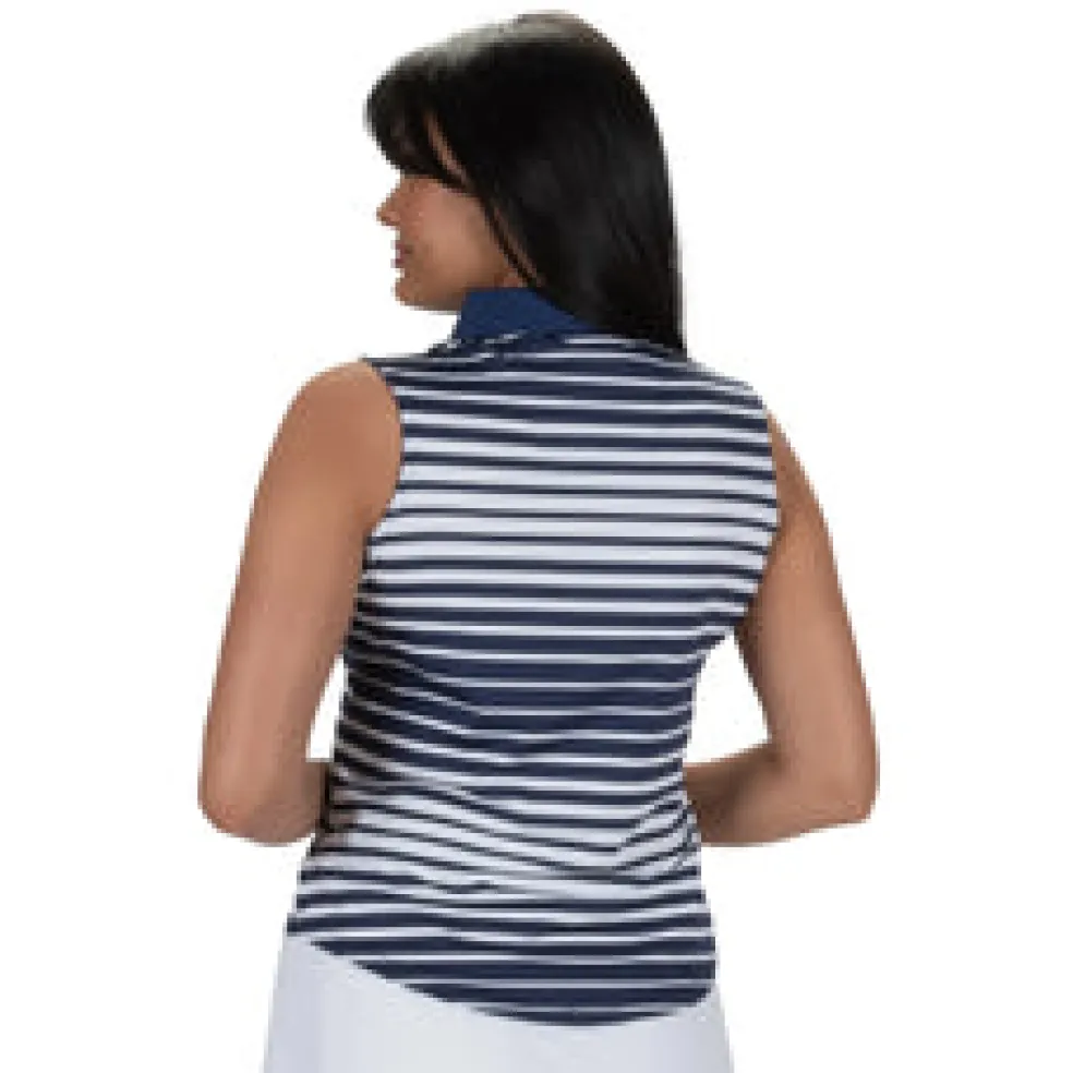 The Tango Sleeveless Polo is constructed with a beautiful yarn-dyed polyester/spandex jacquard blend Ð soft on the skin yet cool to the touch. The contrast solid self-collar and open Y-neck offer an attractive, sleek neckline for the female golfer. Using DeLux Dri‚Ñ¢ Moisture Wicking Technology and UPF 50+, the fabrics will keep you dry and sun-protected from the first tee to the final green. This polo is perfect for pairing with single-coloured golf bottom.