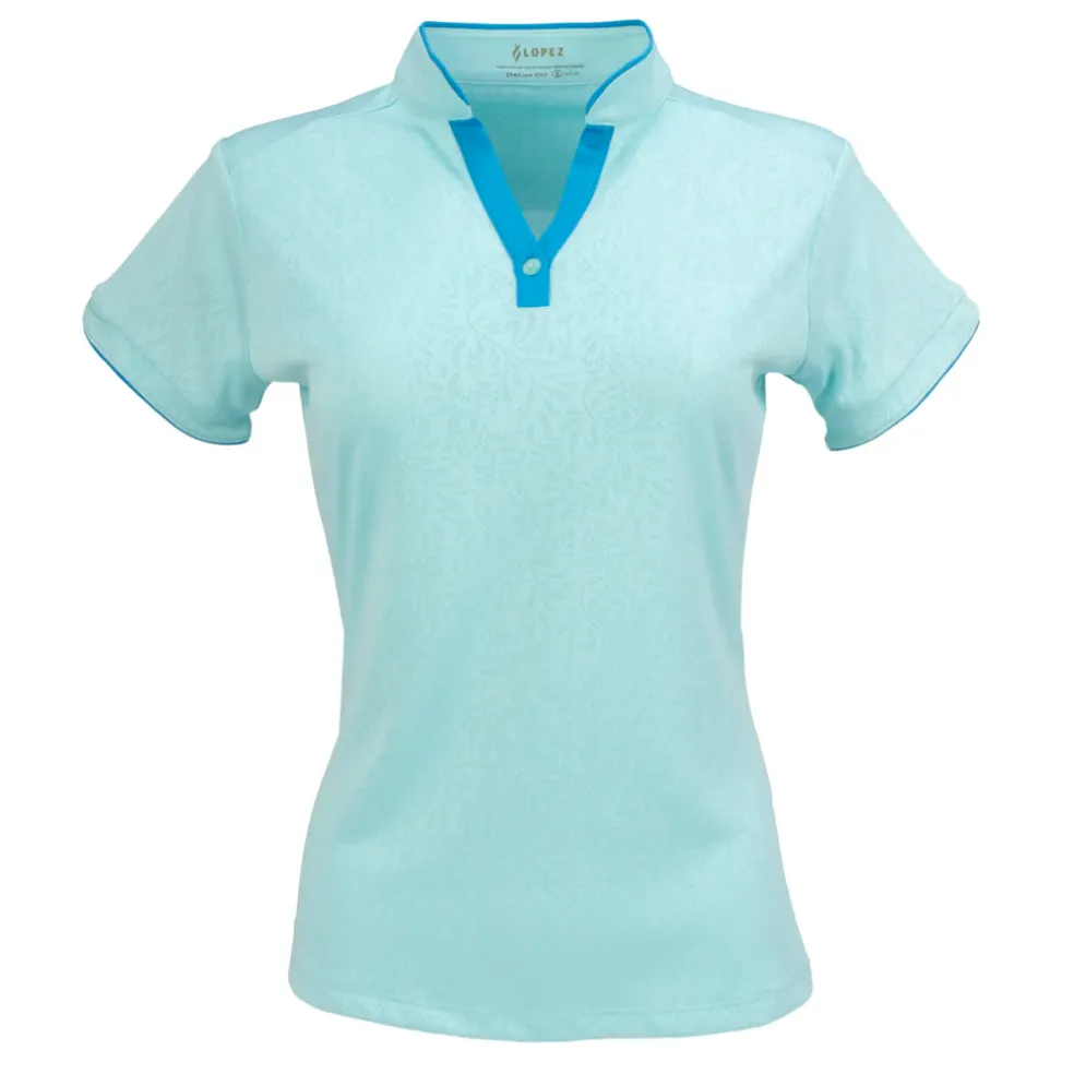 Step onto the course in effortless elegance with the Vine Short Sleeve Polo. Crafted from breathable polyester mesh jacquard and using DeLux Dri‚Ñ¢ Moisture Wicking Technology, this polo ensures all-day comfort and performance. The standout contrast open Y-neck collar with a single button adds a touch of sophistication, while the tulip sleeve and hem detail with contrast piping elevates your look with a modern twist. With the signature Lopez Flame at the right hip, this polo combines style and functionality to keep you at the forefront of fashion and performance.