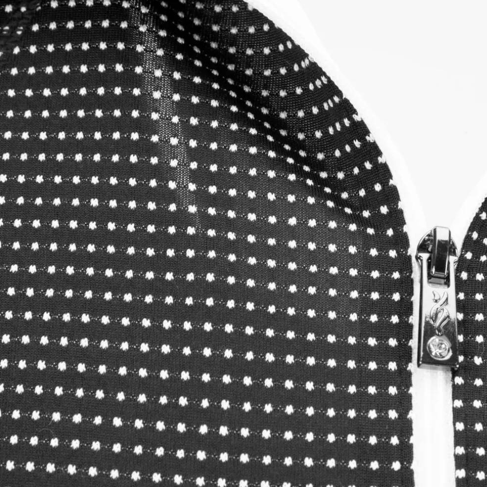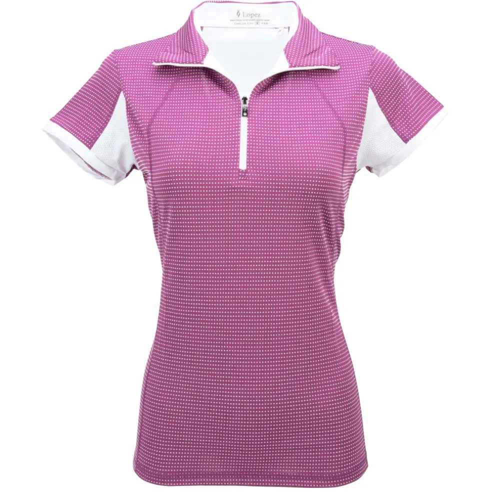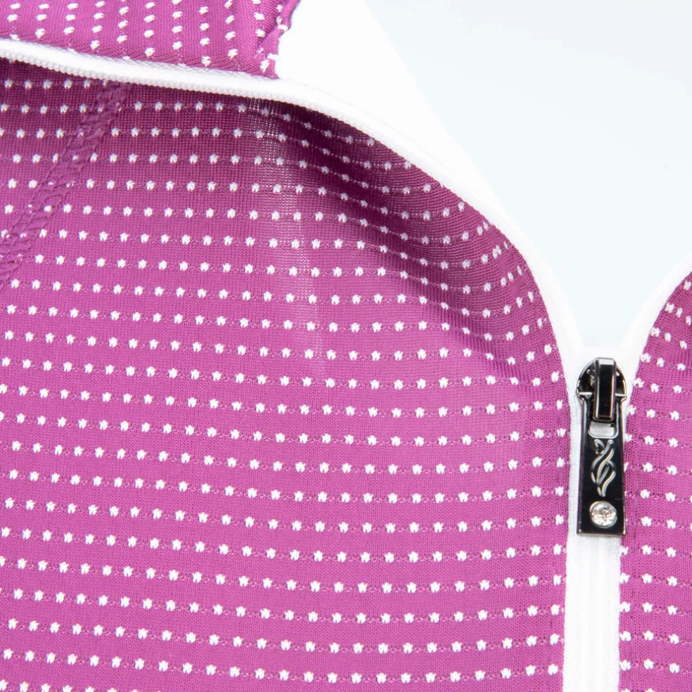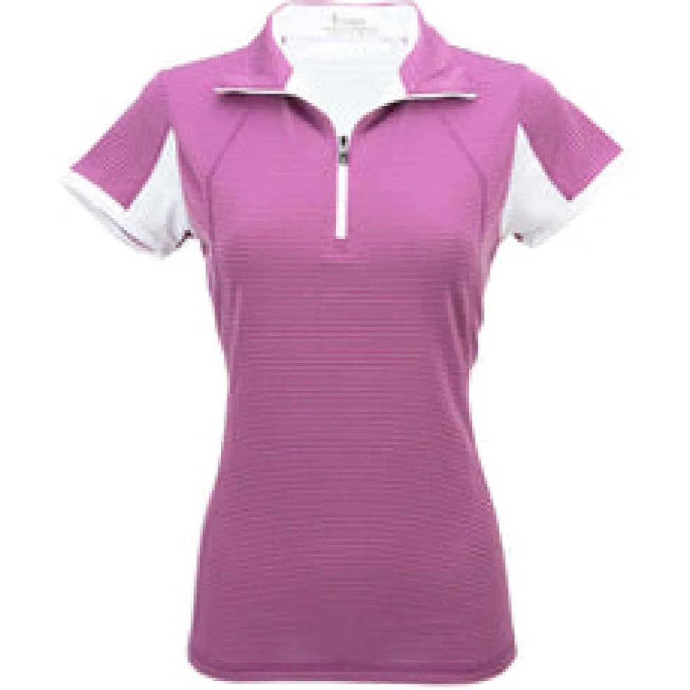 The Zone Short Sleeve Polo is constructed from a beautiful jacquard, using a 92% polyester/8% spandex that is soft on the skin, yet cool to the touch. The convertible mock collar, 1/2 zip placket with metallic jewel zipper pull, contrast mesh insets and coverstitch detail provide an attractive, sleek look for the female golfer. Using DeLux Dri® Moisture Wicking Technology, the lightweight jacquard fabric will keep you cool and dry from the first tee to the final green. The Zone Short Sleeve is the perfect choice to pair with any single-coloured golf bottom.