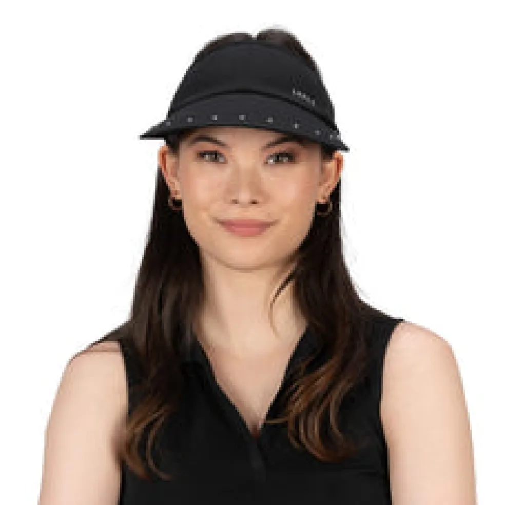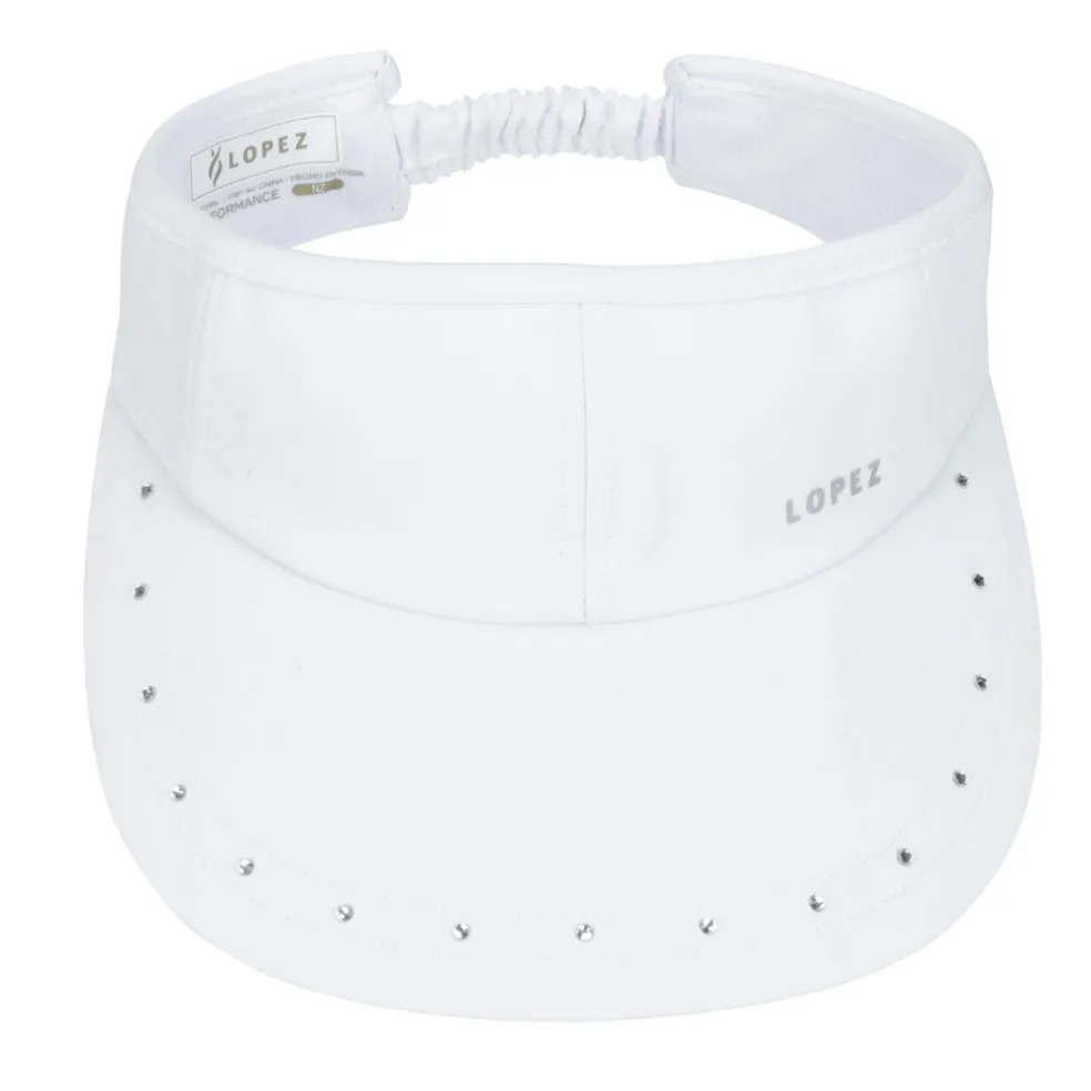 The Nancy Lopez Bling Visor offers style and comfort in one unique design. This visor utilizes fashion fabrics from the Nancy Lopez Apparel Collection, allowing you to coordinate perfectly with any Lopez outfit. It’s made using 100% polyester, making it a breathable, versatile piece of headgear. The comfort elastic gives a snug fit around the head, while the full-coverage, rhinestone-decorated bill offers optimal protection from the sun.