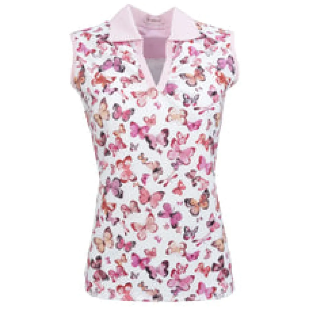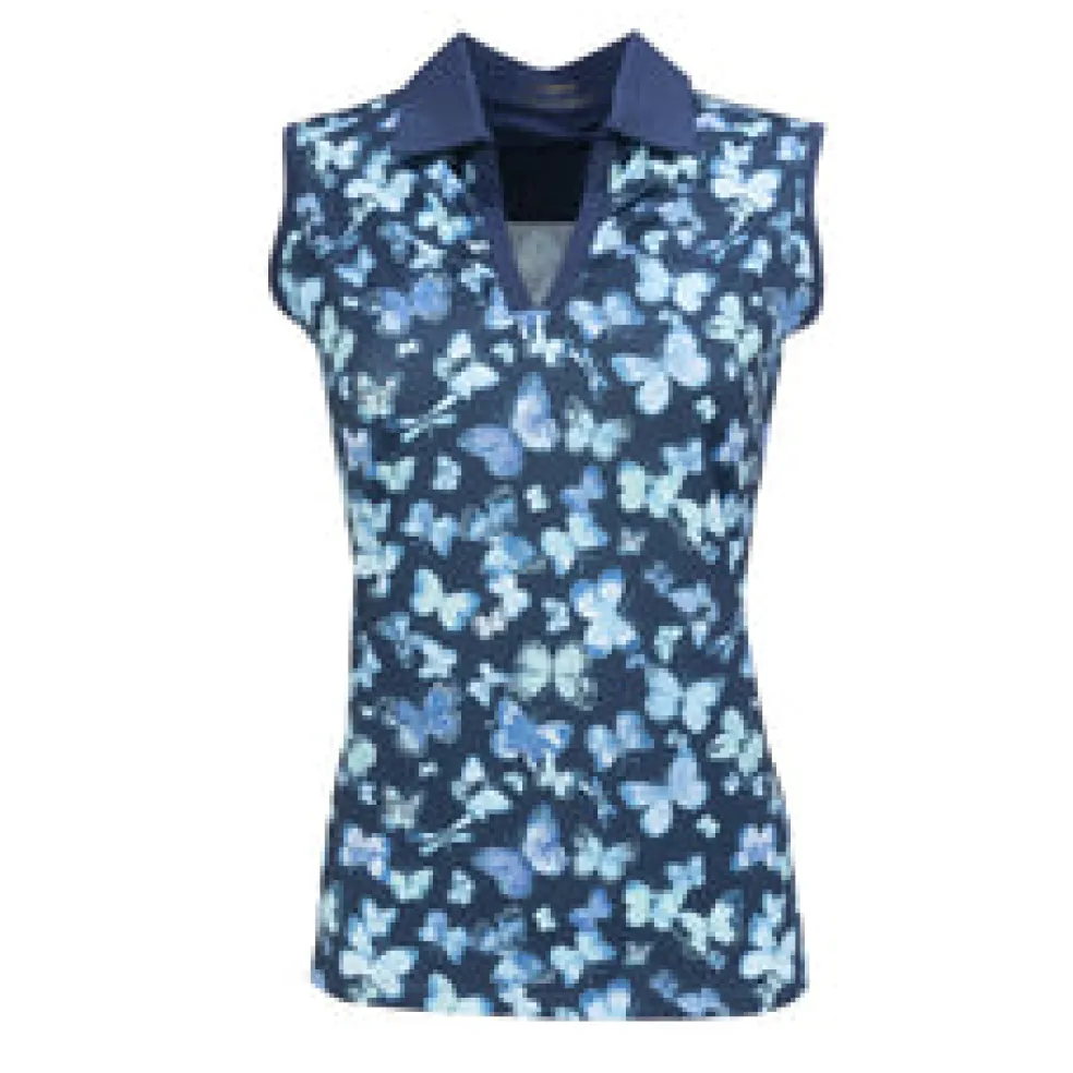 The Butterfly Sleeveless Polo elevates your game with an attractive, feminine look for the golfer. Crafted from polyester/spandex printed jersey, this polo features DeLux Dri‚Ñ¢ moisture-wicking technology and UPF 50+ sun protection, ensuring you stay cool and shielded on the course. With a solid self-collar, shirring detail at open V-neck placket, and the iconic Lopez Flame logo at the right hip, this performance-driven essential is a stylish and functional choice for every round of golf.