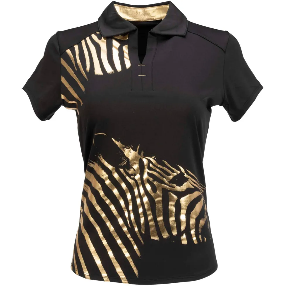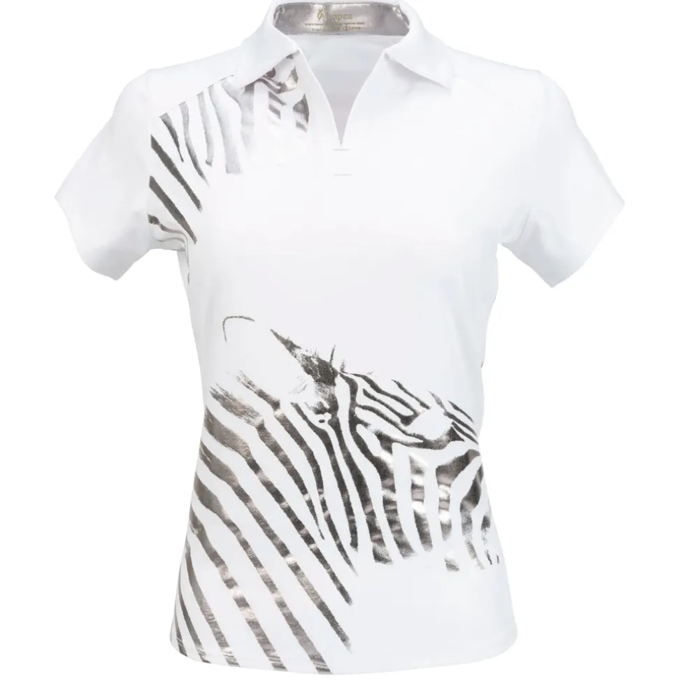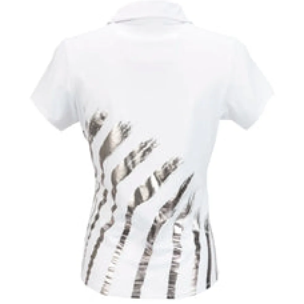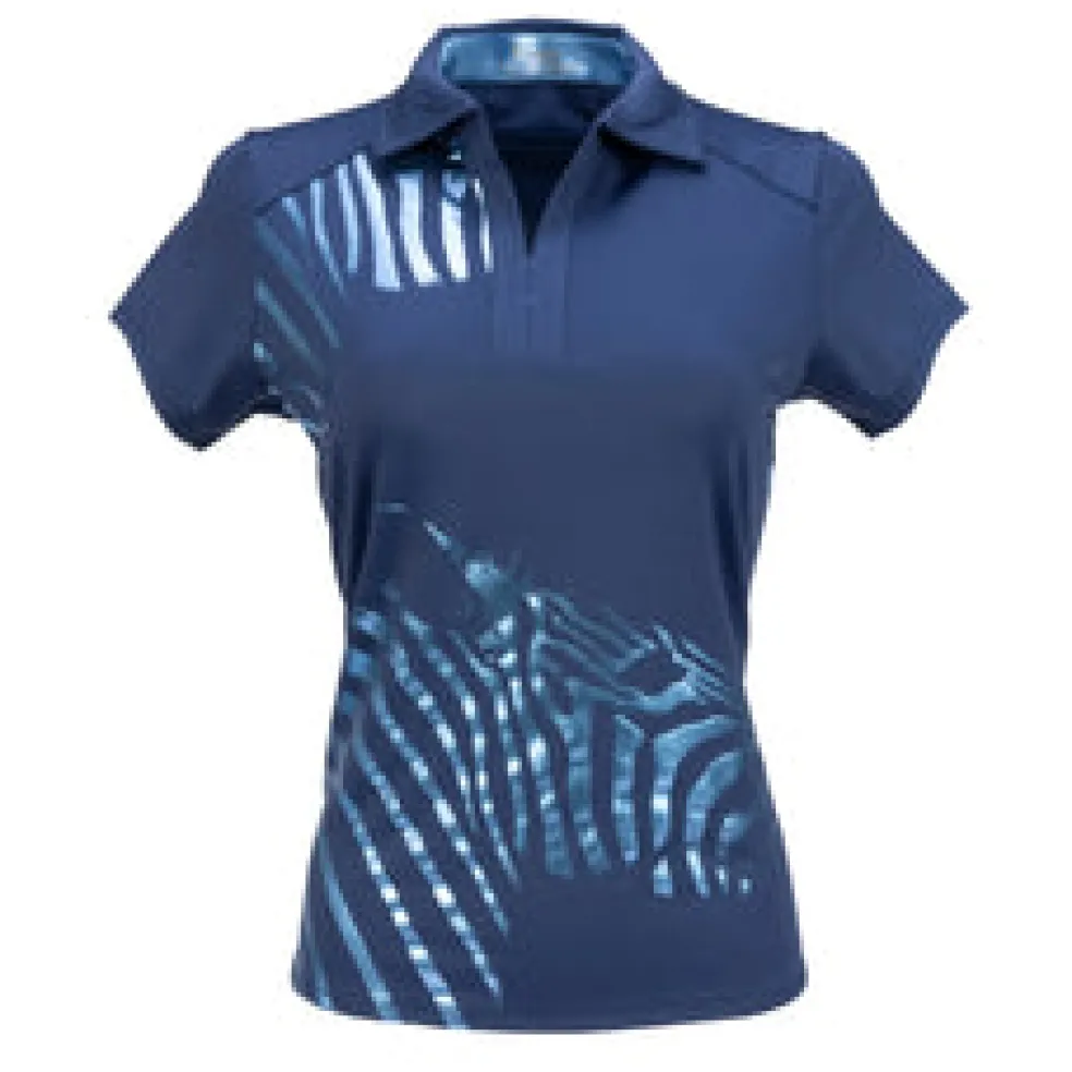 The Safari Short Sleeve Polo is constructed with a beautiful polyester/spandex jersey blend Ð soft on the skin yet cool to the touch. The self-collar and open Y-neck offer the female golfer an attractive, sleek neckline. Using DeLux Dri‚Ñ¢ Moisture Wicking Technology and UPF 50+, the fabrics will keep you dry and sun-protected from the first tee to the final green. This polo is perfect for pairing with single-coloured or printed golf bottoms.