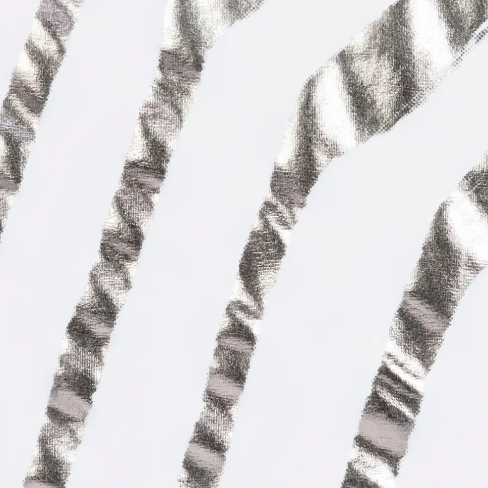 - Open y-neck with metallic bar tack detail.