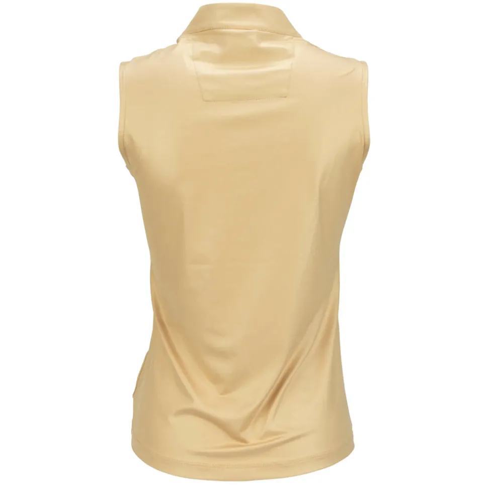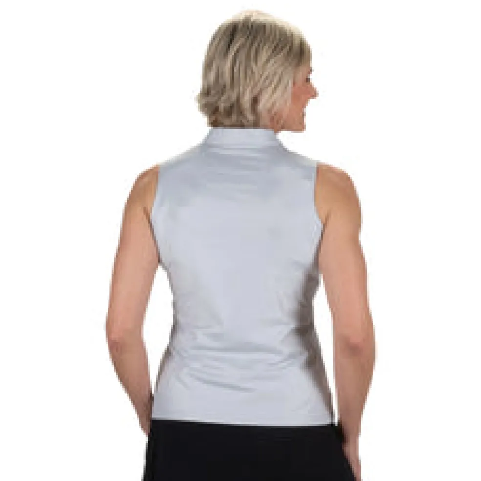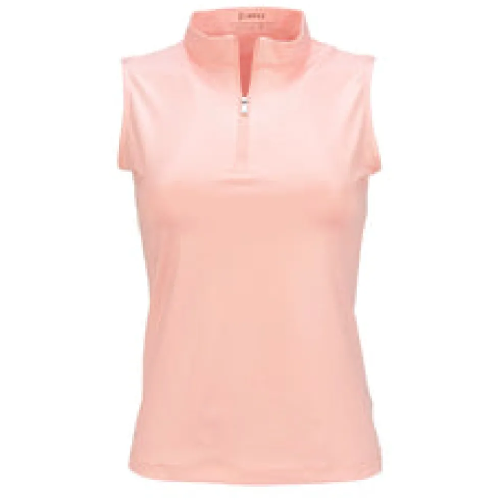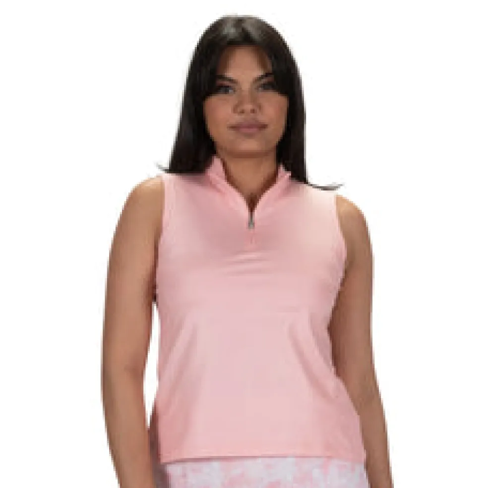The Shine Sleeveless Polo is constructed with a beautiful polyester/spandex jersey blend Ð soft on the skin yet cool to the touch. The mock collar and zip placket offer an attractive, sleek neckline for the female golfer. Using DeLux Dri™ Moisture Wicking Technology and UPF 50+, the fabrics will keep you dry and sun-protected from the first tee to the final green. This polo is perfect for pairing with single-coloured or printed golf bottoms.