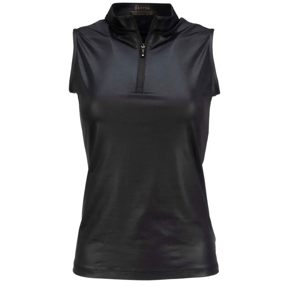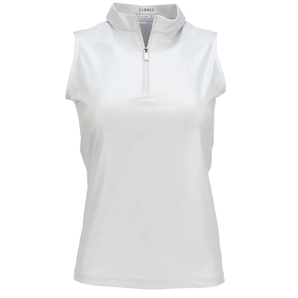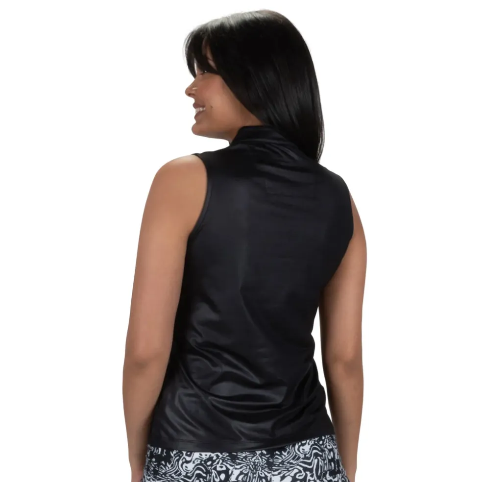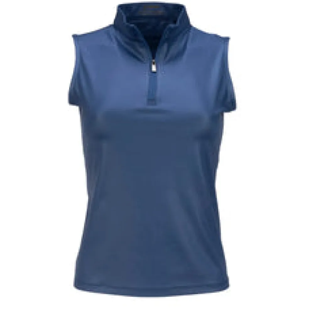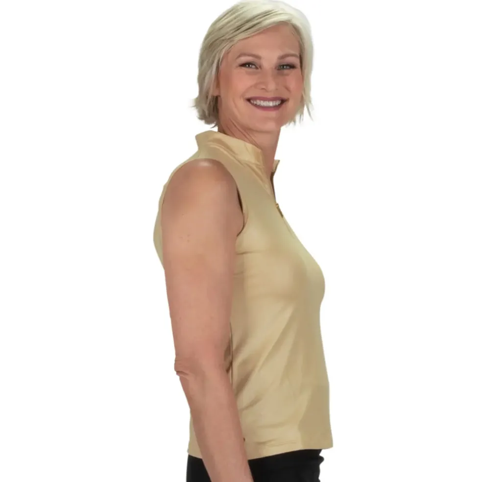 The Shine Sleeveless Polo is constructed with a beautiful polyester/spandex jersey blend Ð soft on the skin yet cool to the touch. The mock collar and zip placket offer an attractive, sleek neckline for the female golfer. Using DeLux Dri™ Moisture Wicking Technology and UPF 50+, the fabrics will keep you dry and sun-protected from the first tee to the final green. This polo is perfect for pairing with single-coloured or printed golf bottoms.