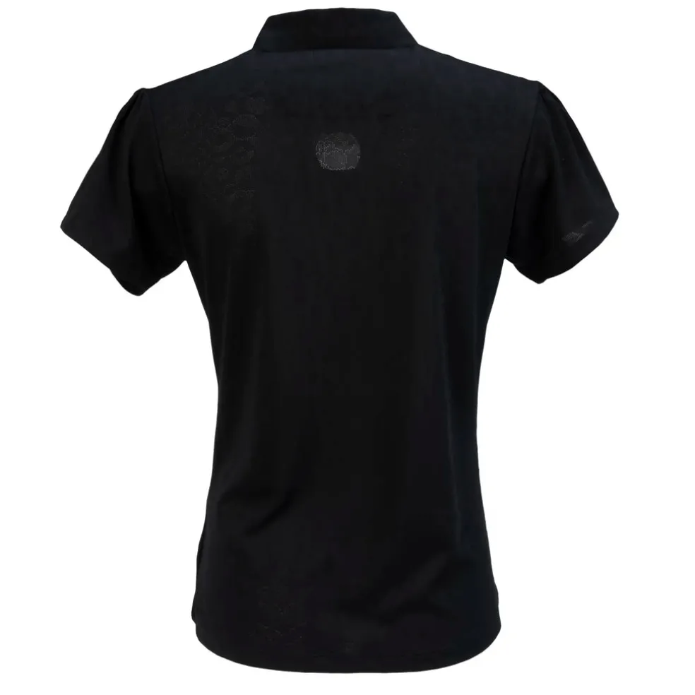 Step up your game with the Swagger Short Sleeve Polo, designed to impress both on and off the course. Crafted from polyester mesh jacquard, this polo combines DeLux Dri¬™ moisture-wicking technology with UPF50+ sun protection to keep you comfortable and shielded from the sun’s rays. The self-collar and one-button teardrop placket provide a sleek, modern look, while the shirring detail at the sleeve cap adds a touch of feminine elegance. Finished with the iconic Lopez Flame logo on the right hip, this polo seamlessly blends high-performance functionality with sophisticated style.