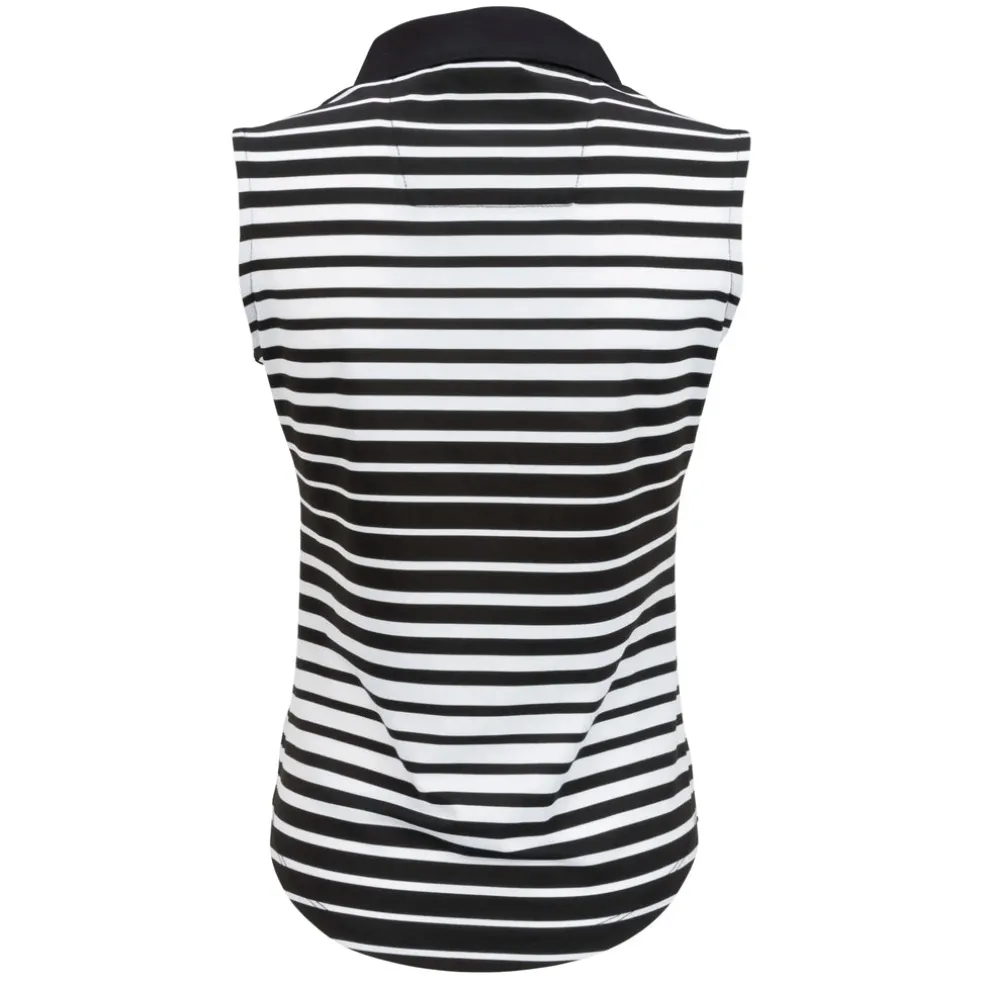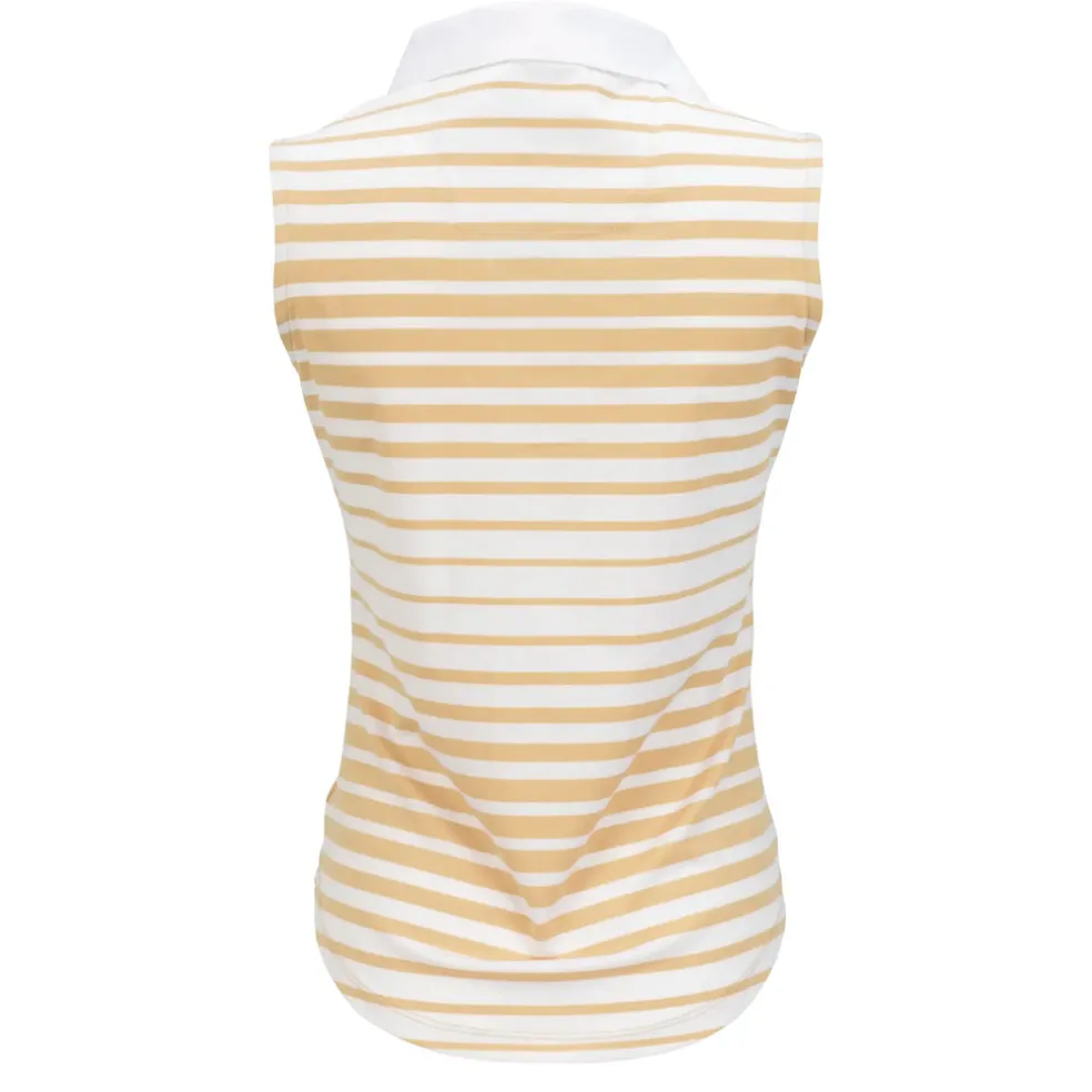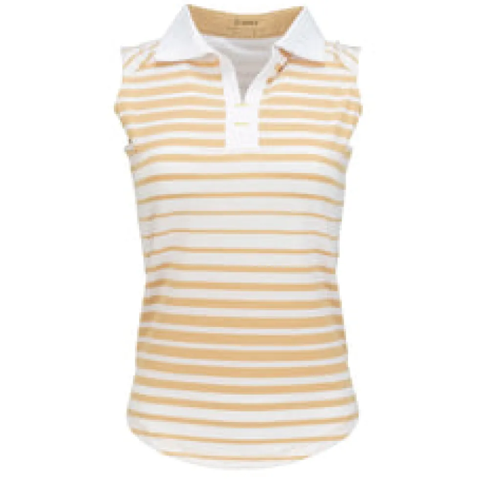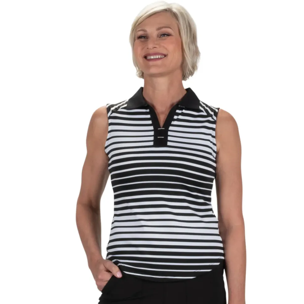 The Tango Sleeveless Polo is constructed with a beautiful yarn-dyed polyester/spandex jacquard blend Ð soft on the skin yet cool to the touch. The contrast solid self-collar and open Y-neck offer an attractive, sleek neckline for the female golfer. Using DeLux Dri‚Ñ¢ Moisture Wicking Technology and UPF 50+, the fabrics will keep you dry and sun-protected from the first tee to the final green. This polo is perfect for pairing with single-coloured golf bottom.